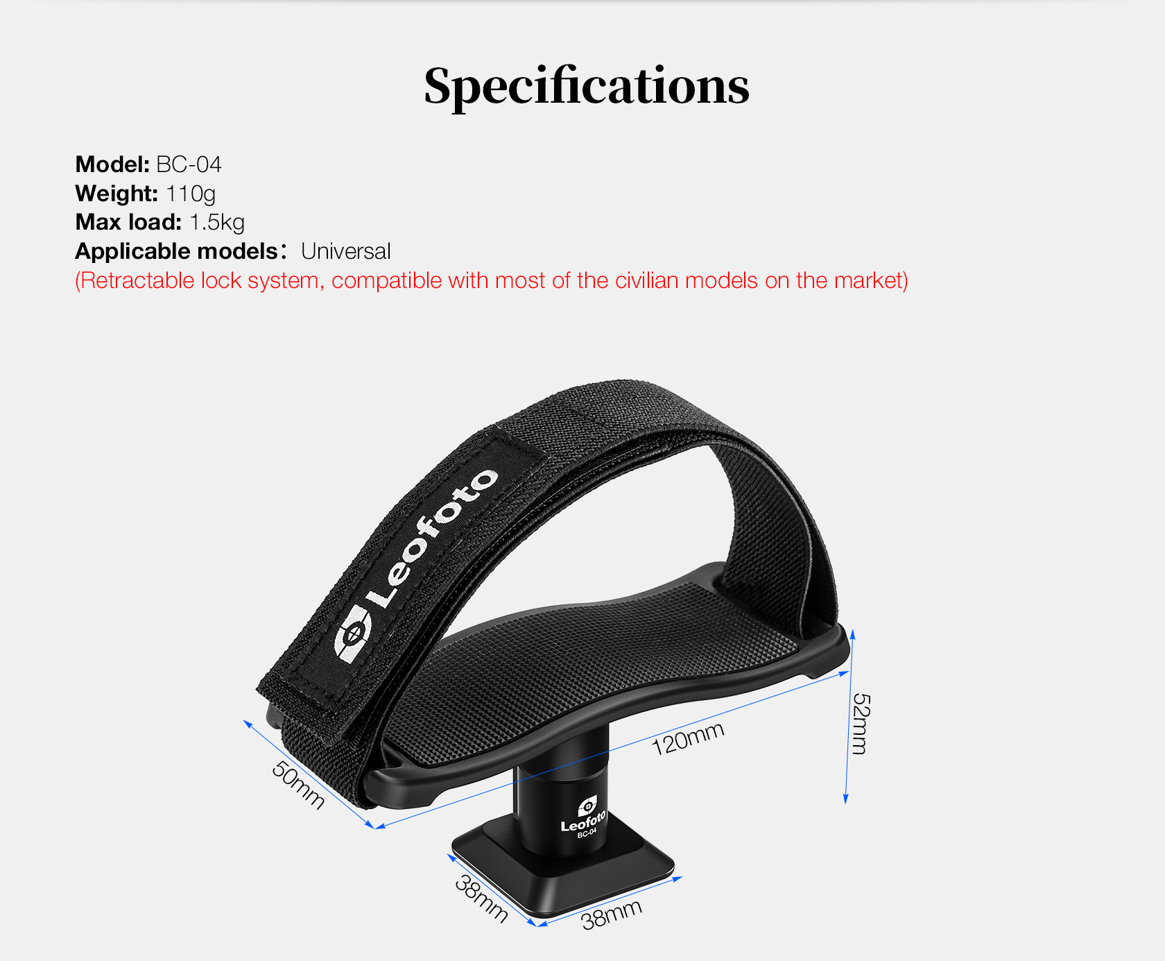 The BC-04 Binoculars Adapter Tray from Leofoto provides steady tripod mounting and support for virtually any binoculars. Made from durable yet lightweight aluminum, it has an Arca-type quick release mount at its base for easy attachment to almost any tripod or monopod with an Arca-type receiver. The touch-fastener strap holds your binoculars in place, and the contoured tray has a