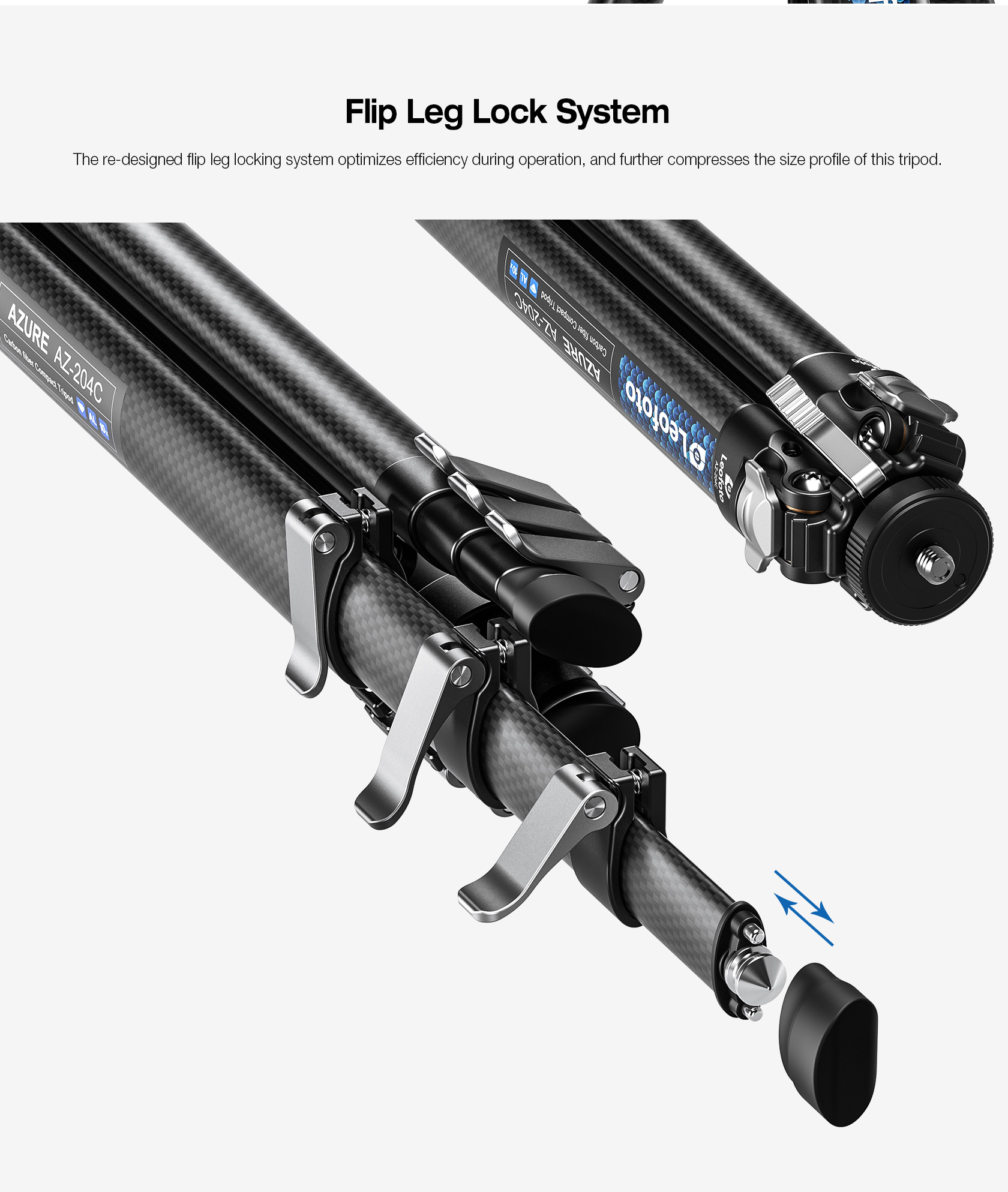 The AZ-204C features a re-engineered flip leg lock system that is quick, secure, and efficient. These high-quality locks ensure that you can deploy or collapse the tripod in seconds, even while wearing gloves, making it a great choice for outdoor use in all seasons.