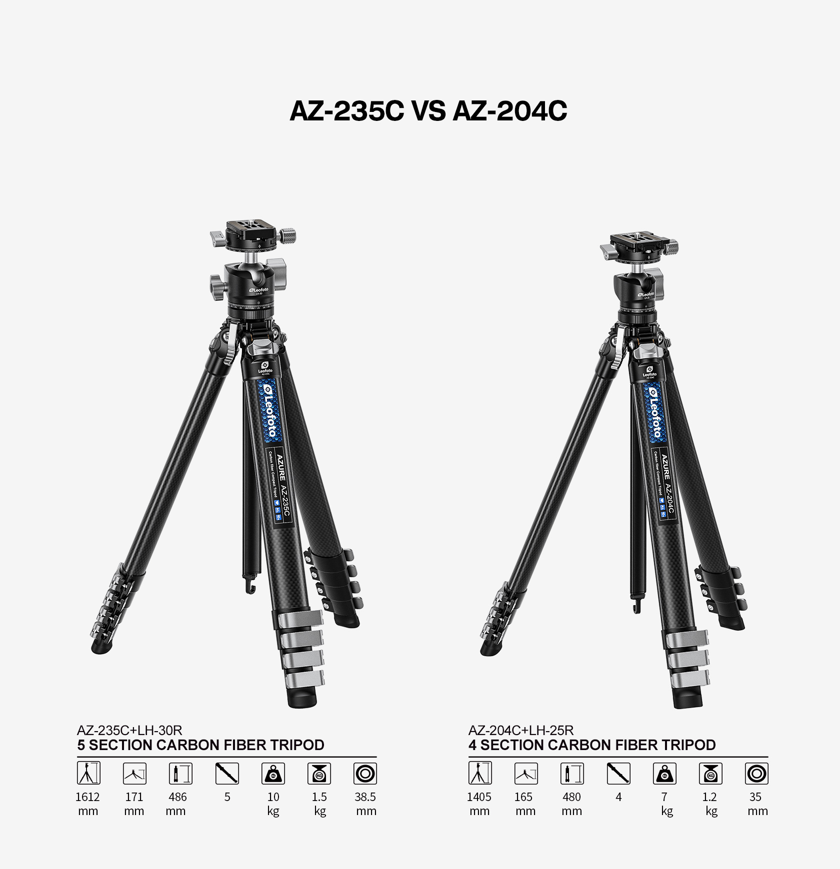 - Model: Leofoto AZ-204C Carbon Fibre Travel Tripod + LH-25R Ball Head