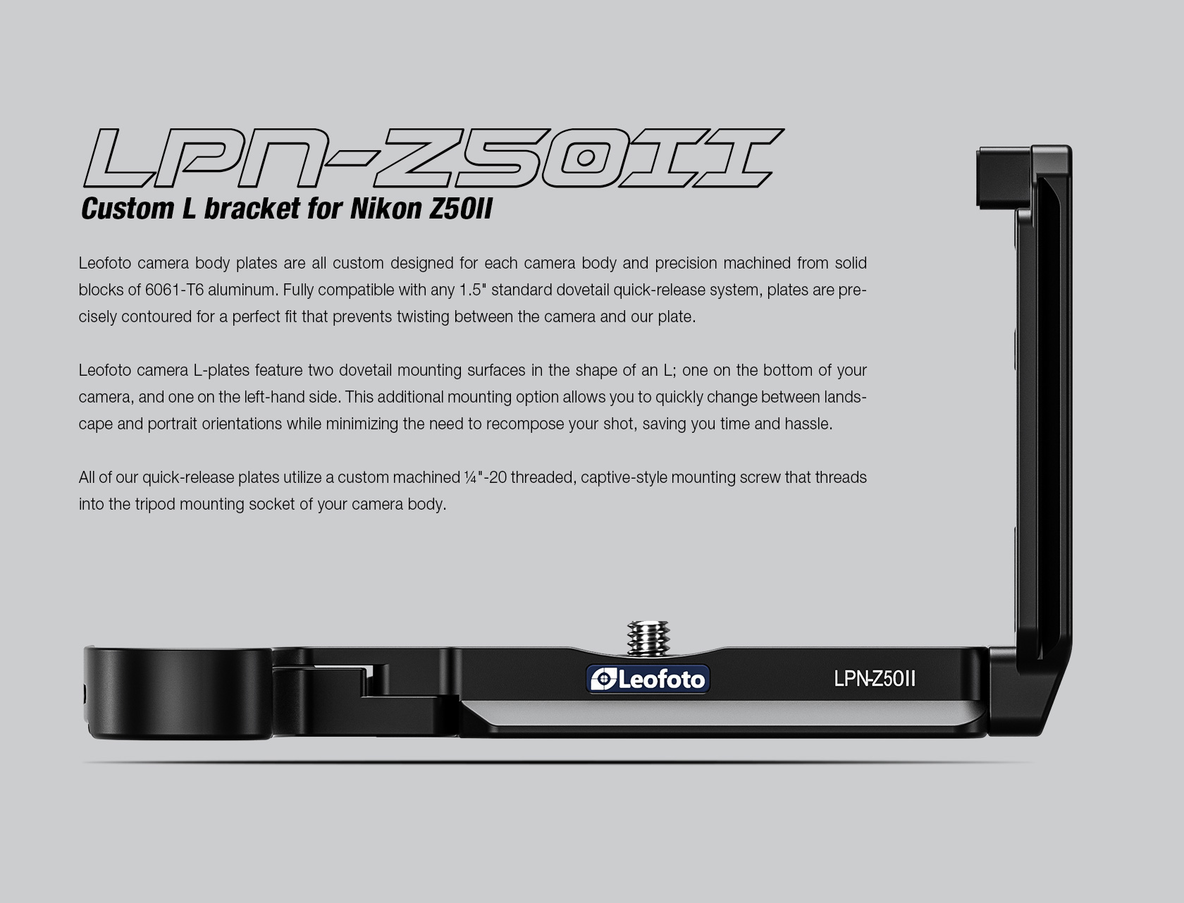 - Model: Leofoto LPN-Z50III Custom L Bracket for NIKON Z6II