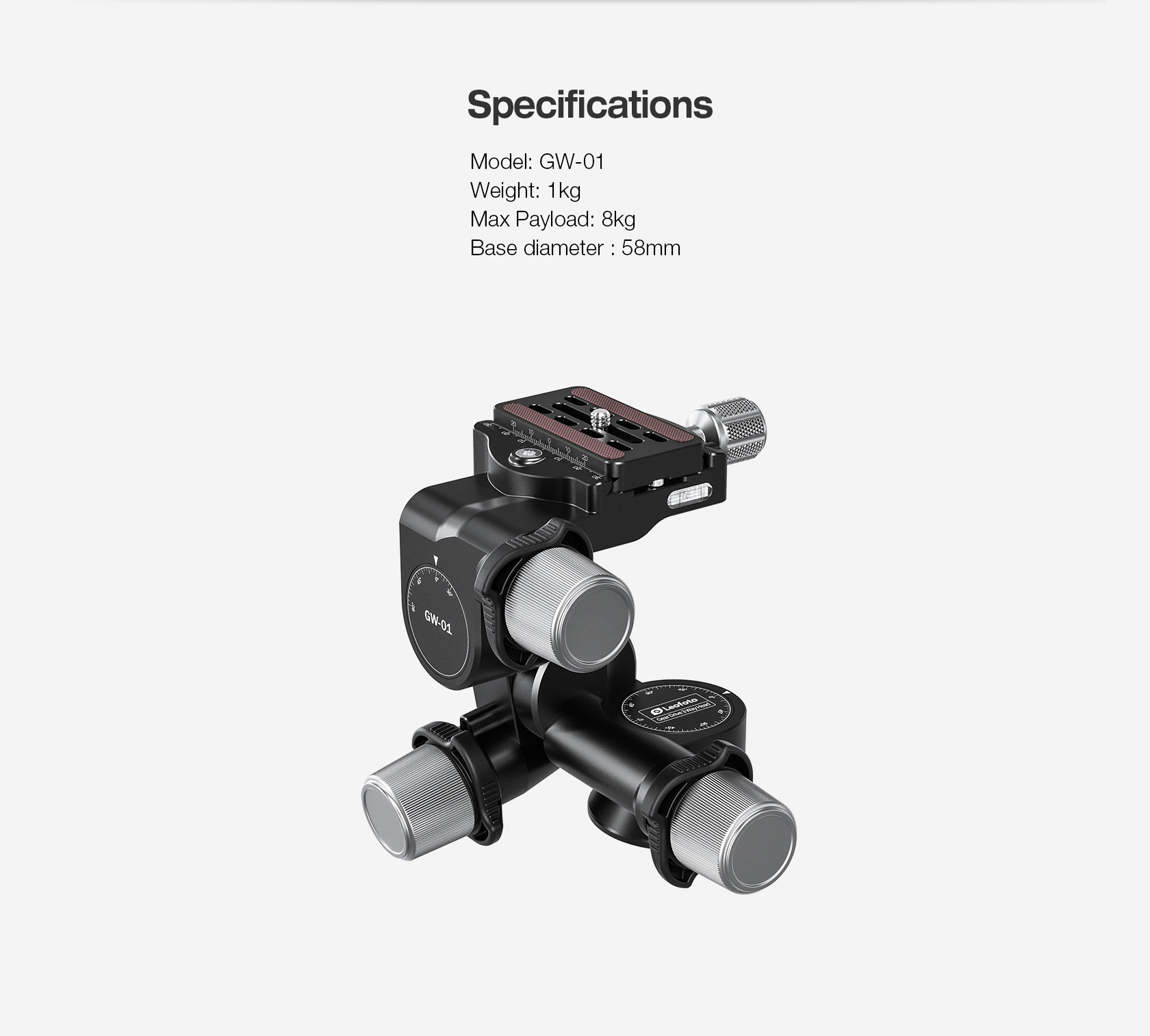 - Model: Leofoto GW-01 Gear Drive 3 Way Head